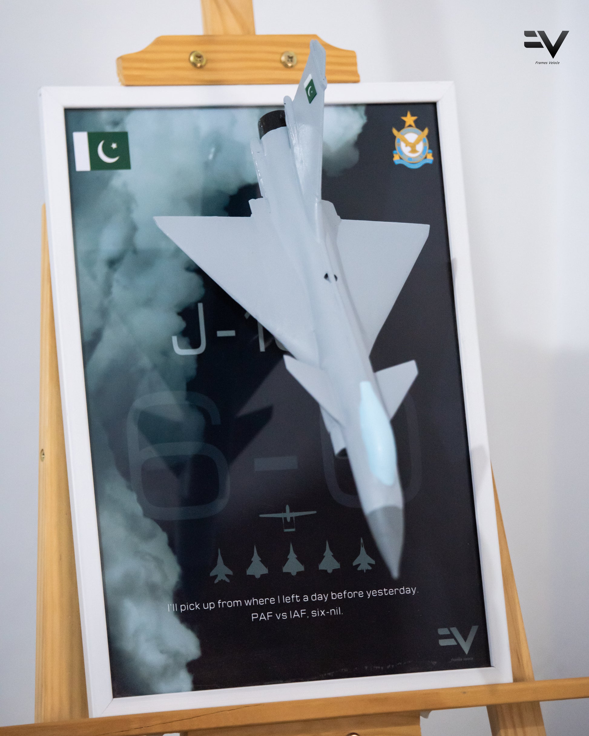 The package includes a fire-themed 18 inch glossy poster with Aurangzeb’s infamous “I’ll begin where I left off: 6-0!” — guaranteed to trigger phone-smashing rage across the border. Housed in a bold black frame with UV-protective glass, this display screams air superiority.