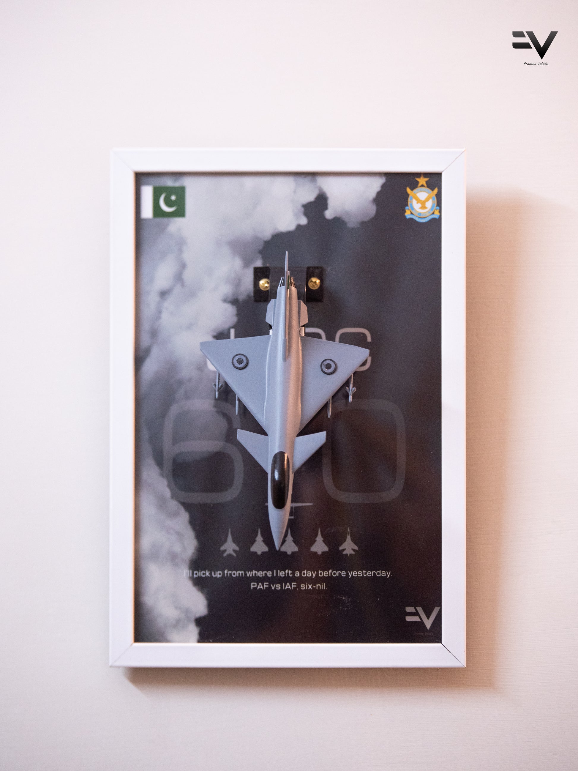 The package includes a fire-themed 18 inch glossy poster with Aurangzeb’s infamous “I’ll begin where I left off: 6-0!” — guaranteed to trigger phone-smashing rage across the border. Housed in a bold black frame with UV-protective glass, this display screams air superiority.