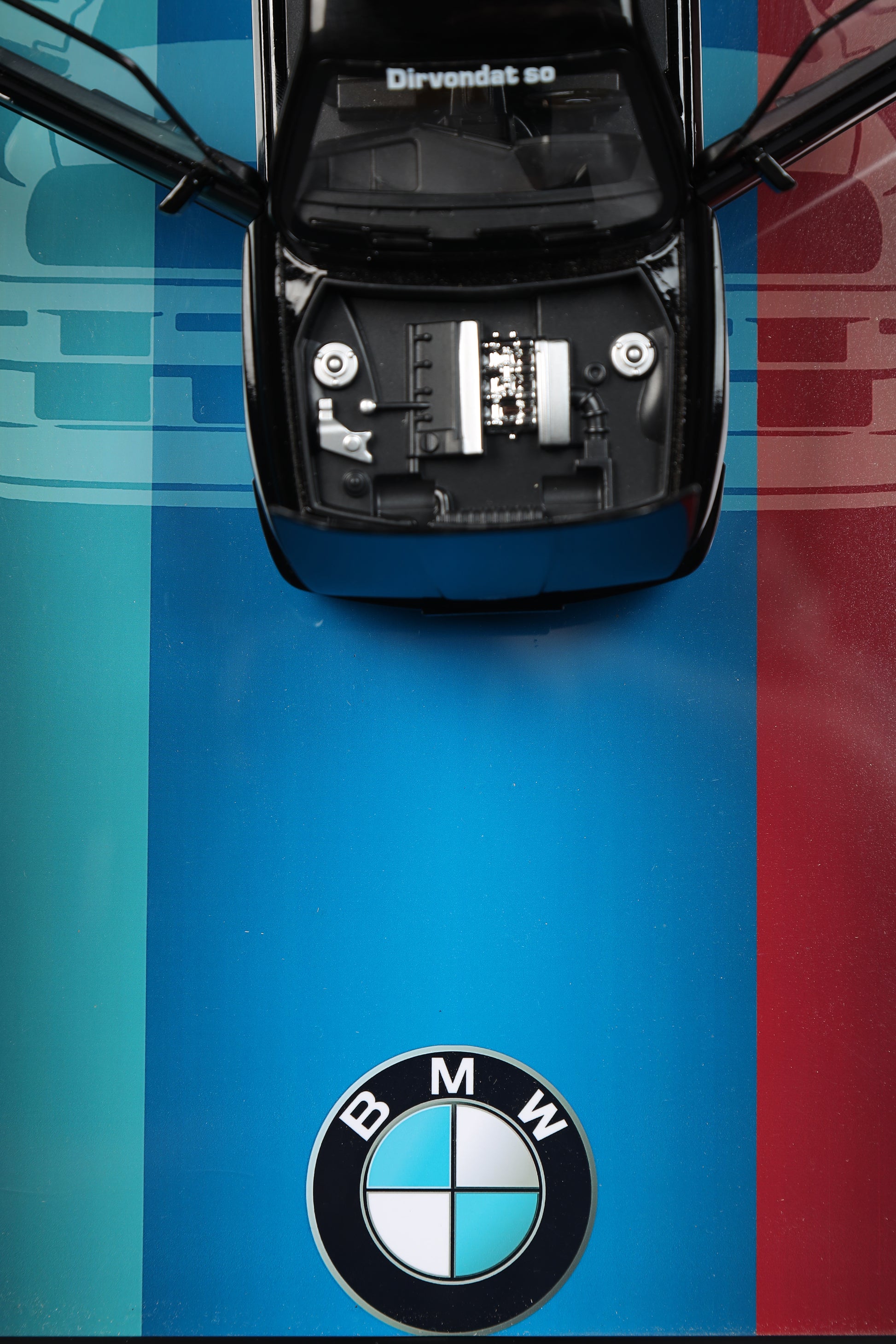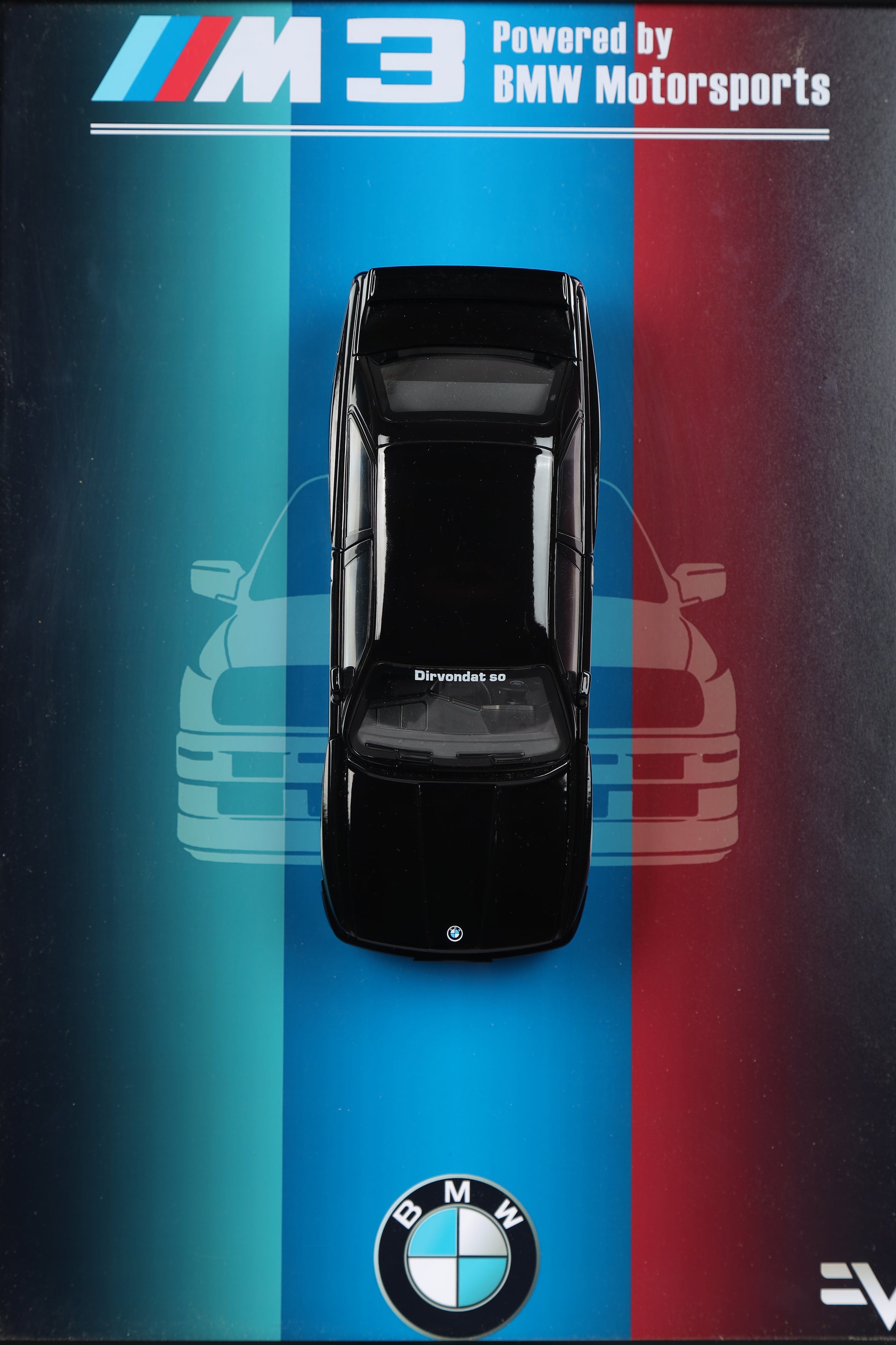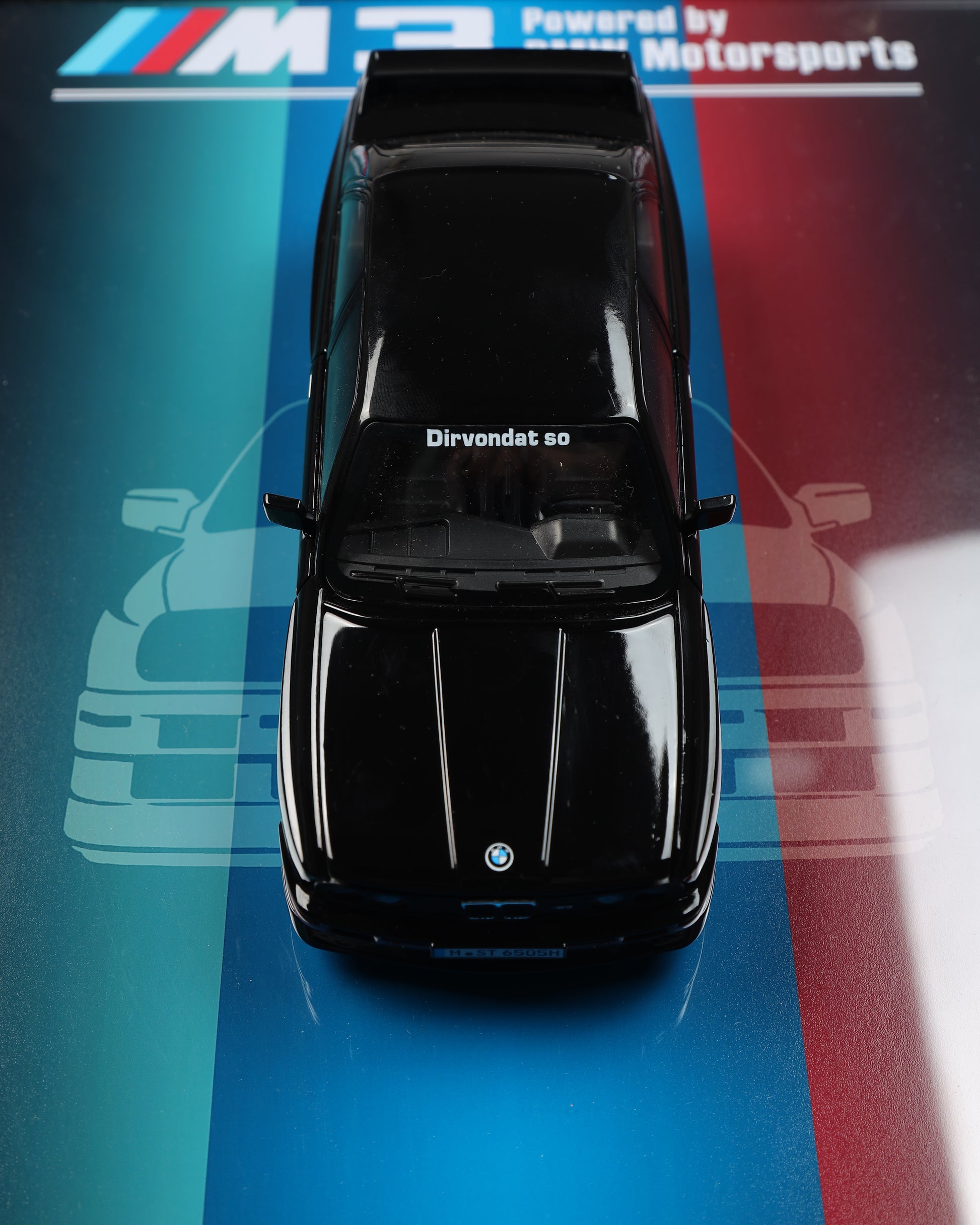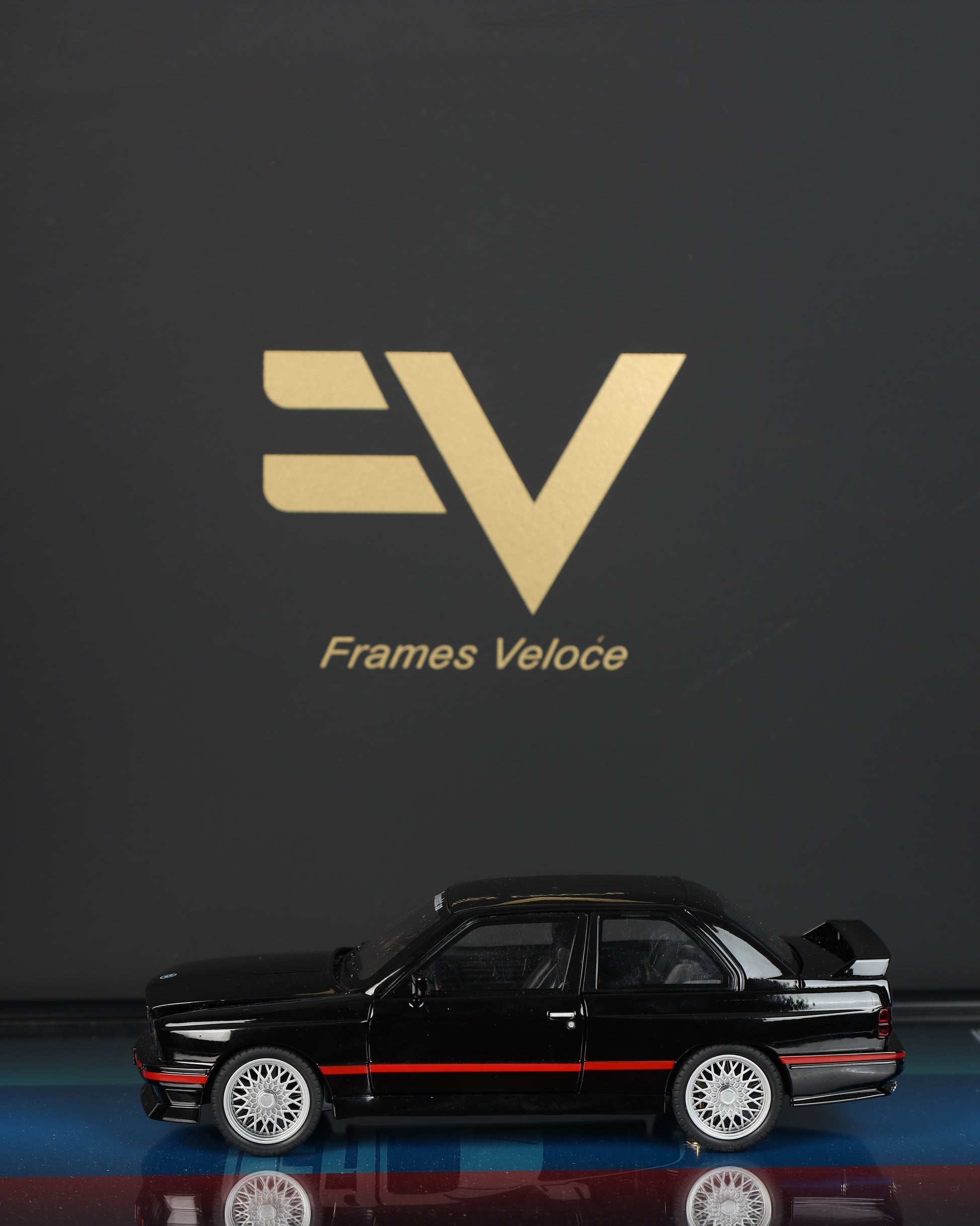 The BMW M3 E30 is the origin of M-performance, a motorsport-bred icon that redefined driving dynamics. This 1:24 scale model is showcased on a striking poster featuring BMW M’s signature tri-colour stripes, symbolizing its racing heritage. The minimalist yet bold illustration of the E30 front end highlights its aggressive stance and timeless design. Nestled in a premium frame with high-end packaging, this collector’s piece is a tribute to the car that started it all, a must for true BMW enthusiasts and purists.