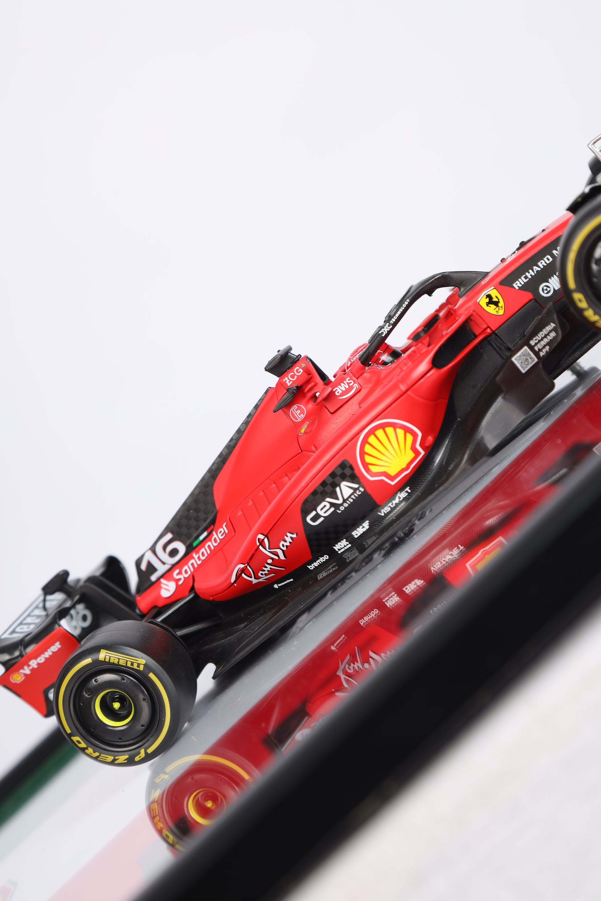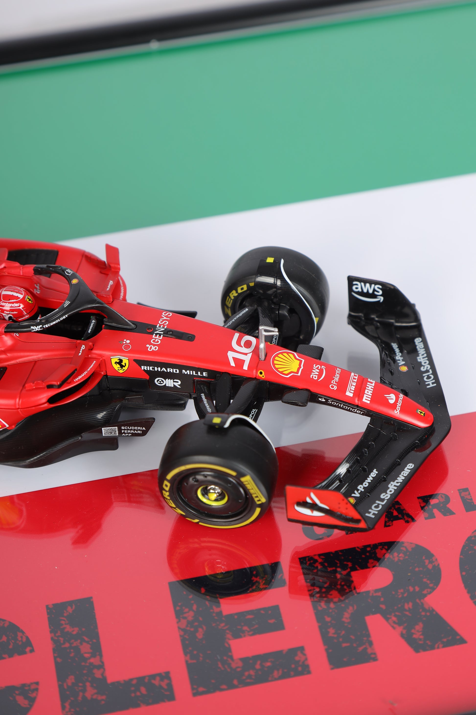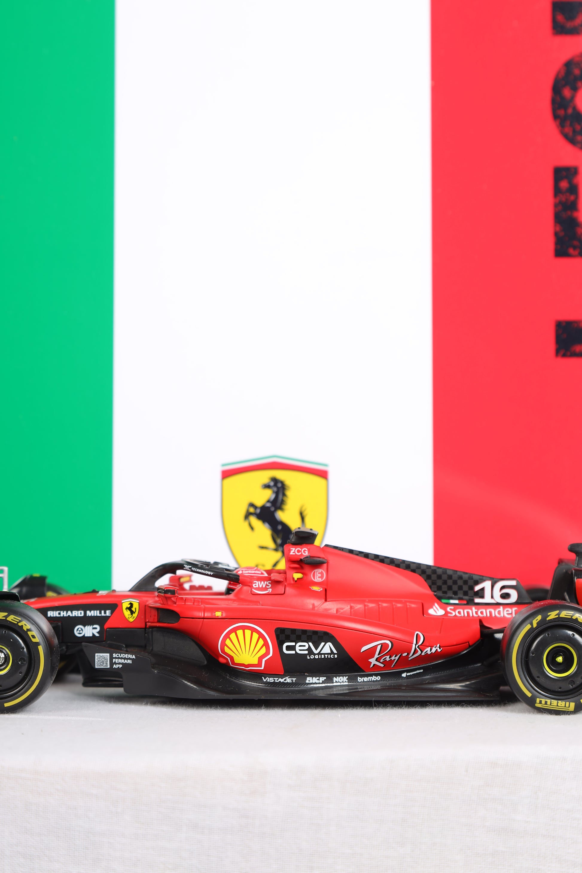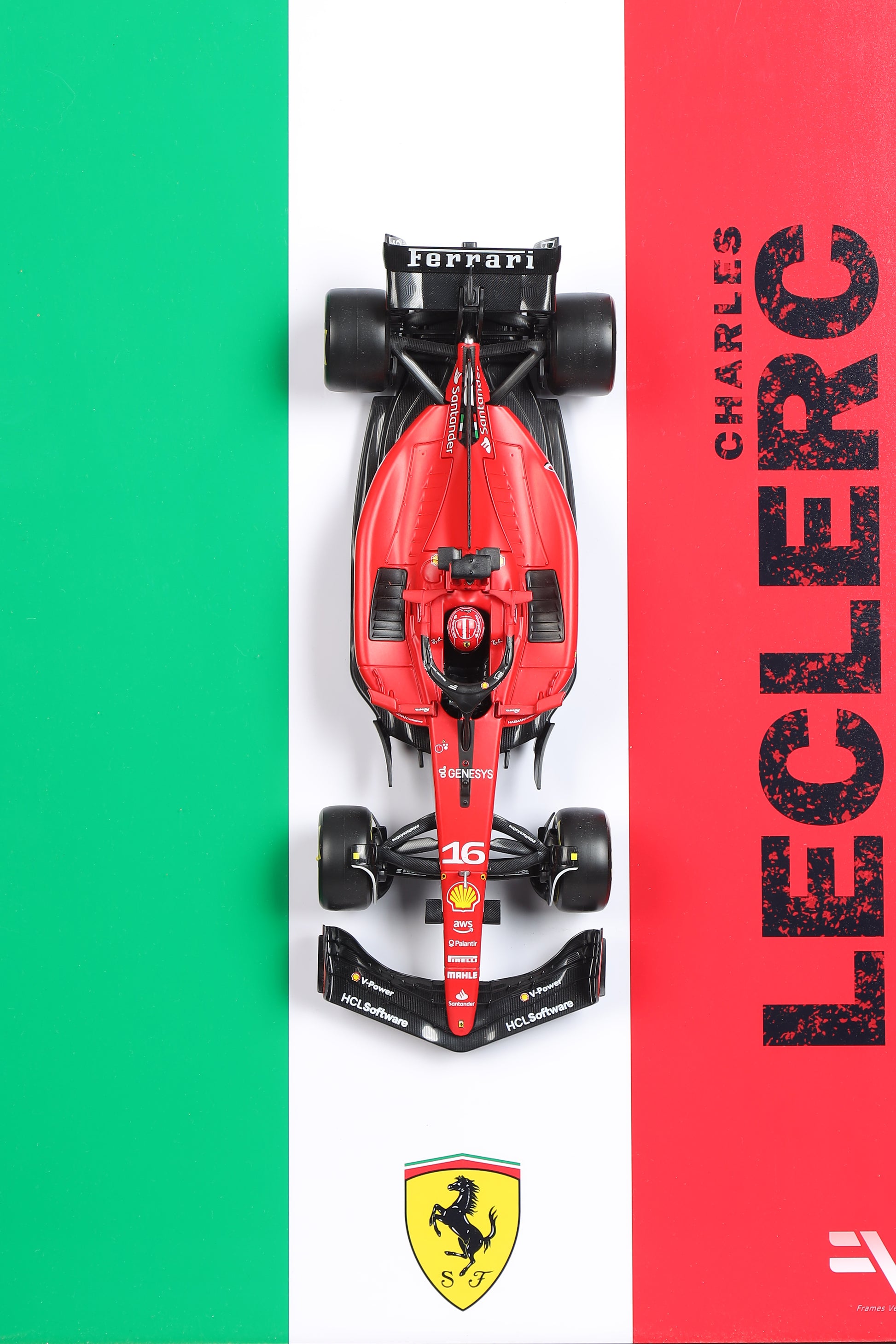 The Ferrari SF-23, driven by Charles Leclerc, carries Ferrari’s Formula 1 legacy. This 1:24 scale, officially licensed model is mounted on a striking poster that elegantly showcases the Italian flag’s green, white, and red, symbolizing Ferrari’s heritage. The bold typography and Ferrari emblem enhance its prestige. Encased in a luxurious frame with premium packaging, it’s an essential piece for F1 enthusiasts and collectors.