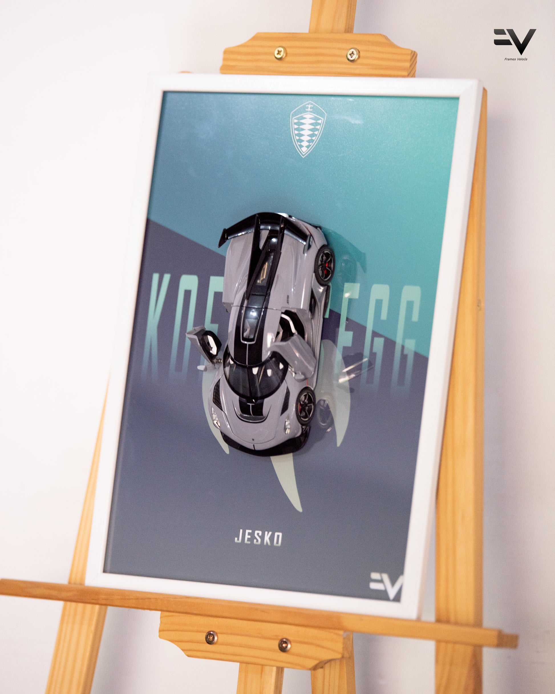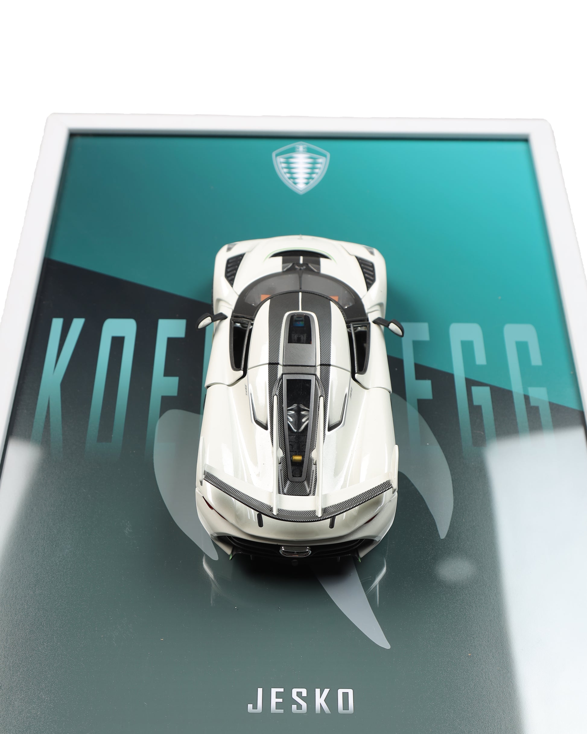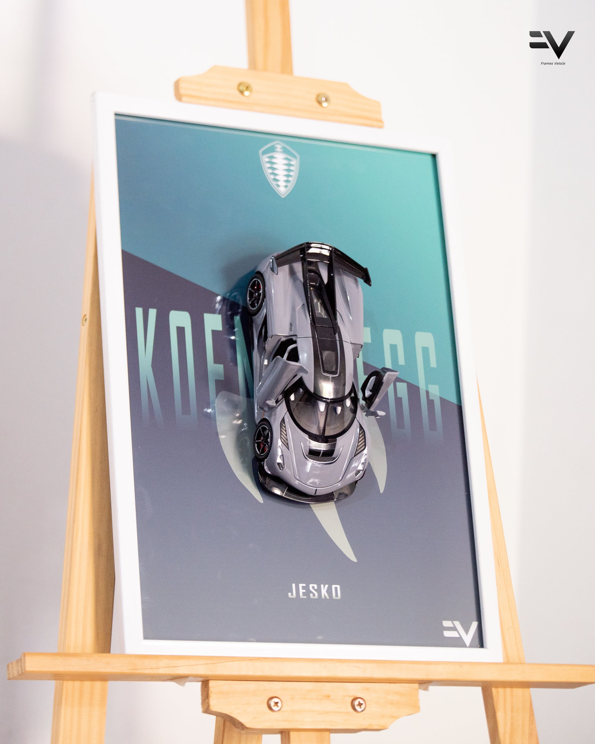 The Koenigsegg Jesko is the pinnacle of hypercar innovation, built to shatter speed records with cutting-edge engineering. This 1:24 scale model is mounted on a sleek, futuristic poster featuring a dynamic split-tone design and Koenigsegg’s ghost emblem, symbolizing its lightweight precision and aerodynamic dominance. The bold, reflective lettering adds to its high-performance aesthetic, capturing the essence of extreme speed. Presented in a premium frame with top-tier packaging, this collector’s piece is essential for those who appreciate the art of speed and innovation.