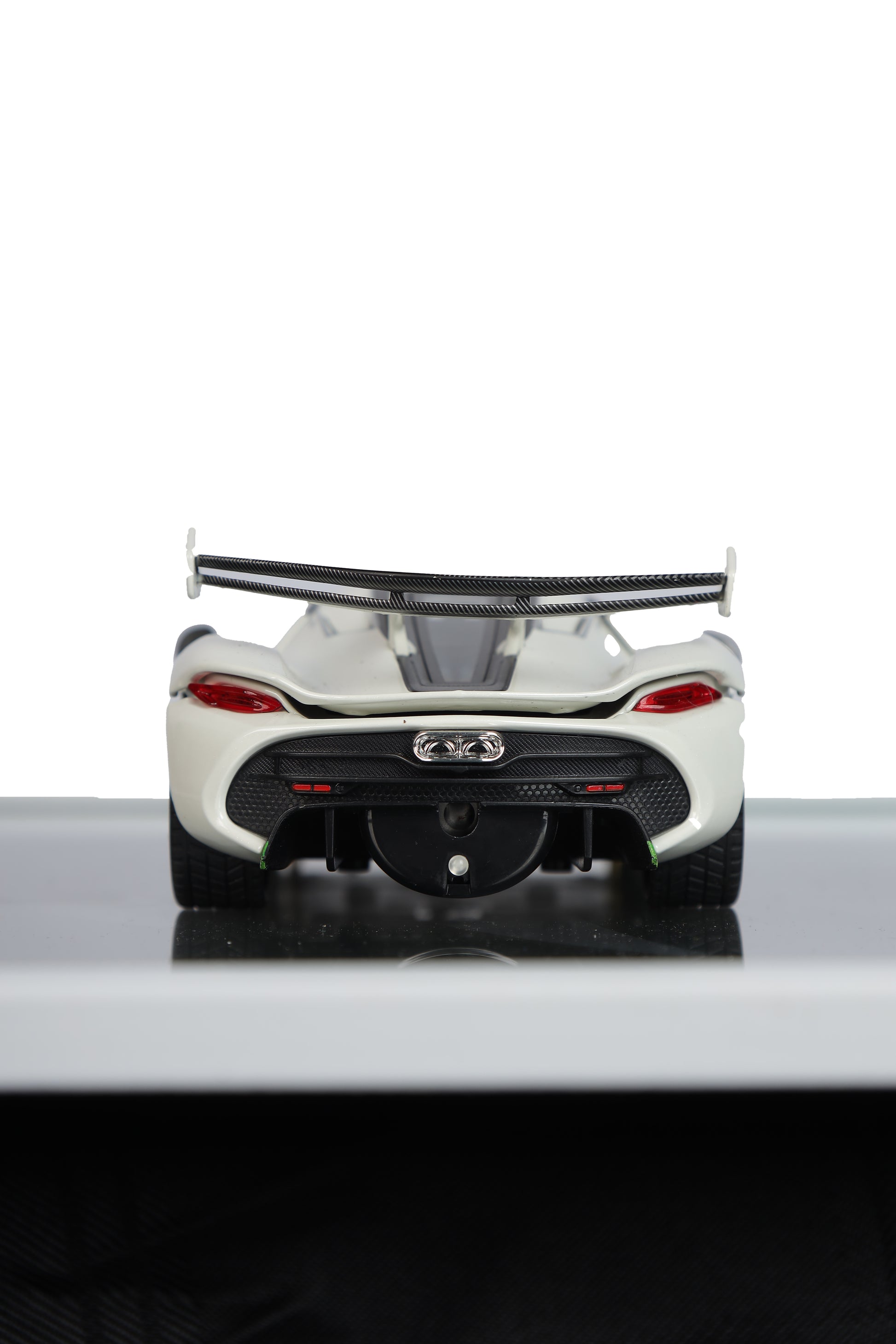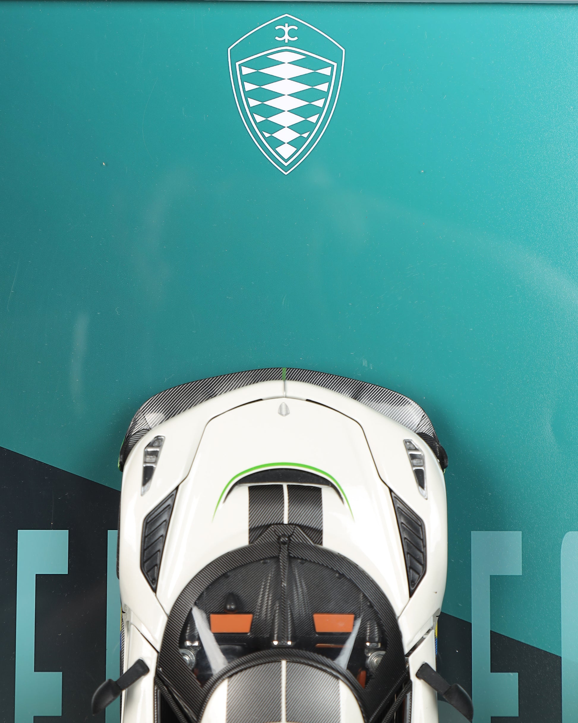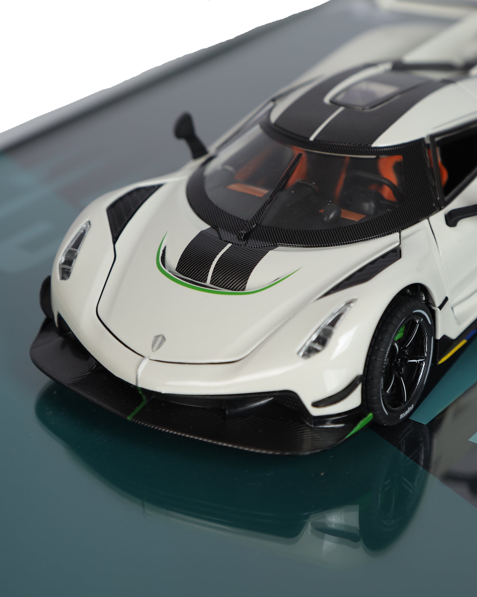 The Koenigsegg Jesko is the pinnacle of hypercar innovation, built to shatter speed records with cutting-edge engineering. This 1:24 scale model is mounted on a sleek, futuristic poster featuring a dynamic split-tone design and Koenigsegg’s ghost emblem, symbolizing its lightweight precision and aerodynamic dominance. The bold, reflective lettering adds to its high-performance aesthetic, capturing the essence of extreme speed. Presented in a premium frame with top-tier packaging, this collector’s piece is essential for those who appreciate the art of speed and innovation.