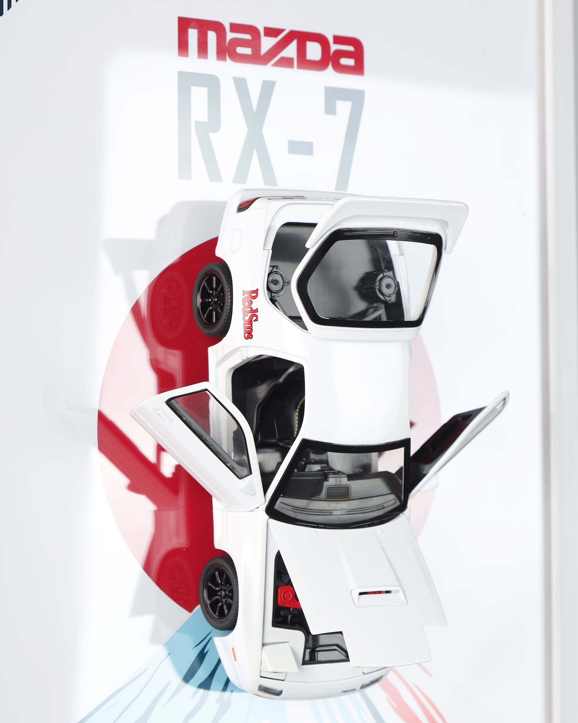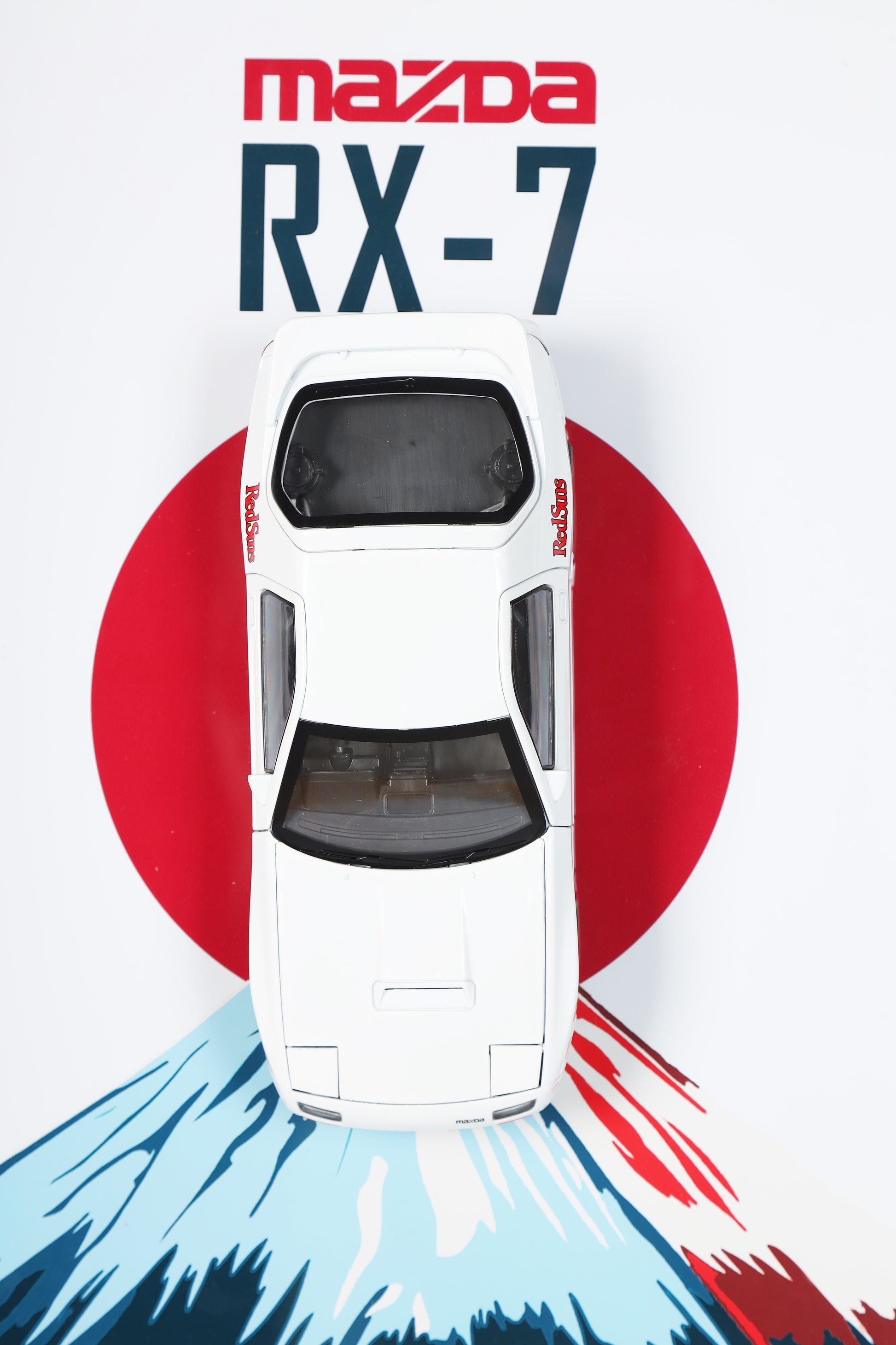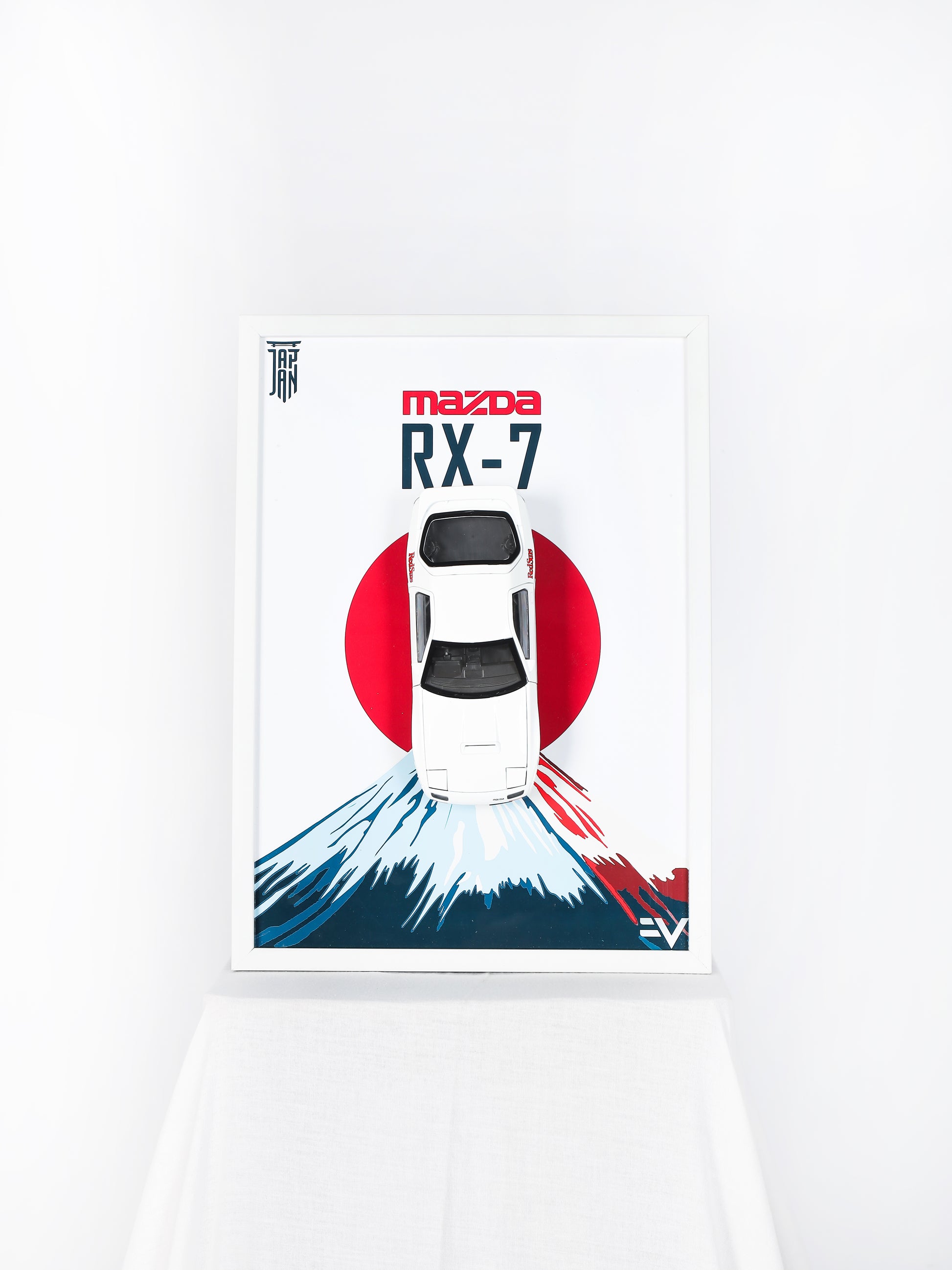 The Mazda RX-7 FC3S is a true JDM legend, known for its rotary-powered precision and dominance in the togue. This 1:24 scale model is mounted on a stunning poster that captures Japan’s rich automotive culture, featuring a bold depiction of Mount Fuji and the iconic Rising Sun. The minimalist yet striking design embodies the RX-7’s balance of beauty and performance. Encased in a premium frame with high-end packaging, this is an essential piece for rotary enthusiasts and fans of Japanese automotive excellence.