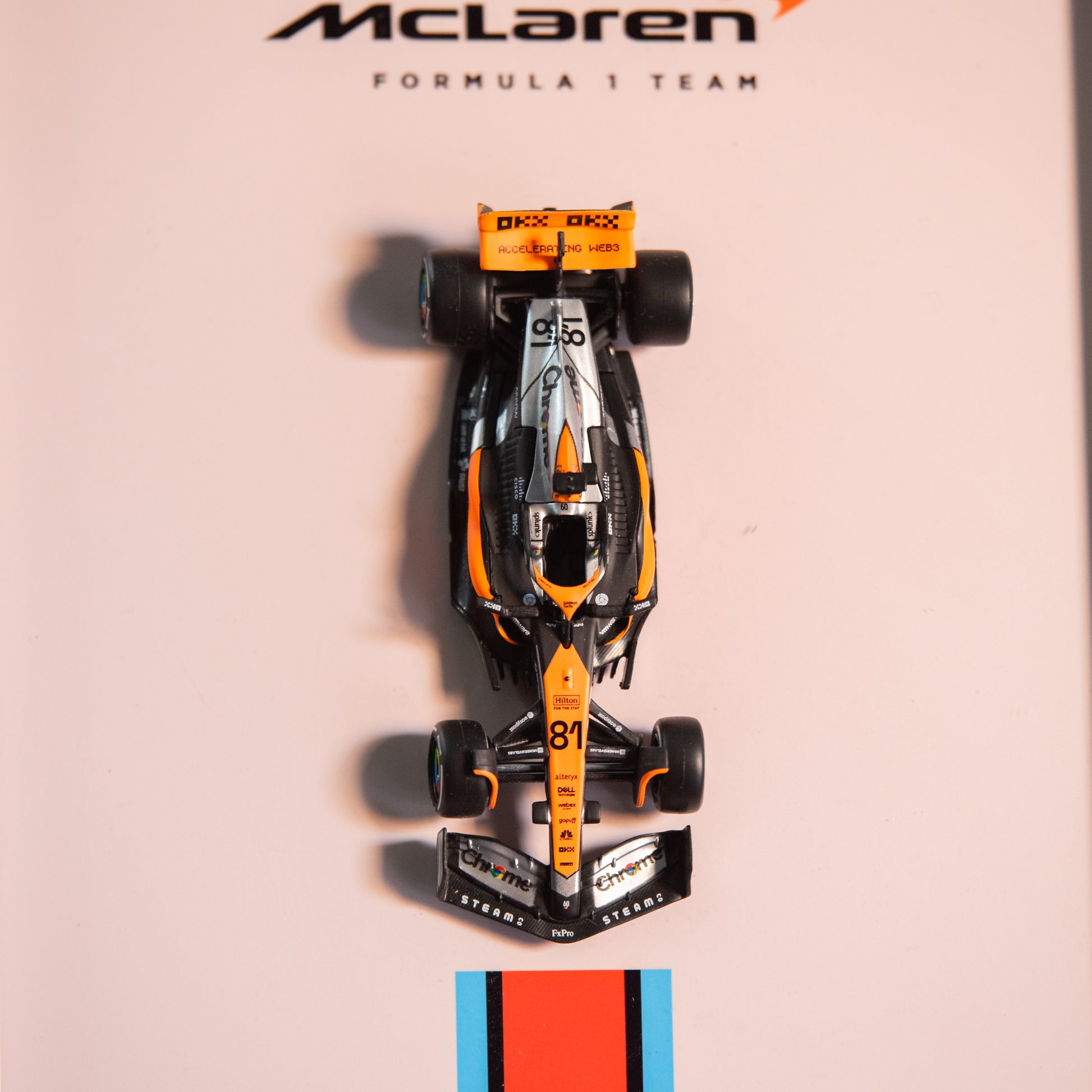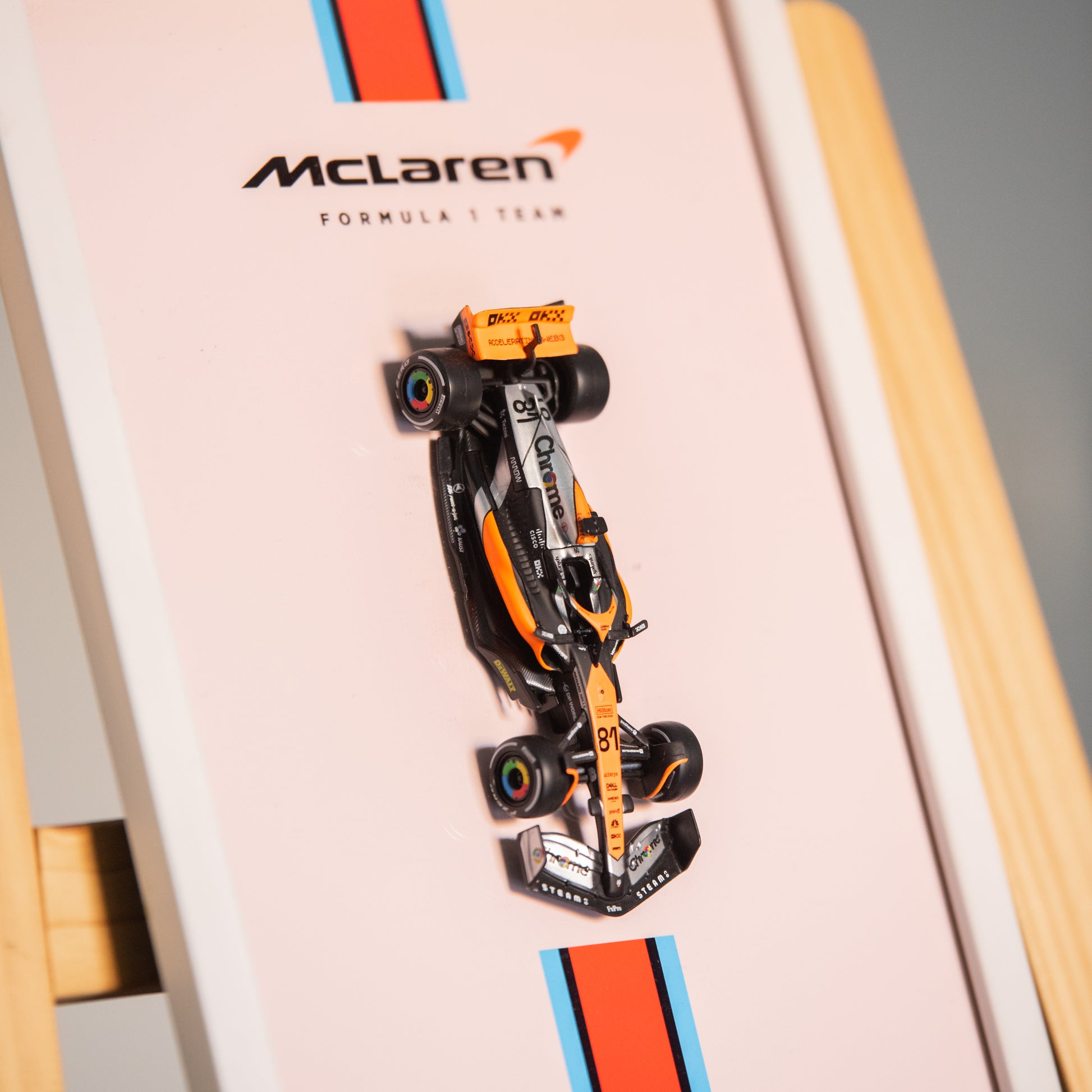 A symbol of speed and innovation, this 1:43 scale McLaren Formula 1 model captures the team’s sleek design and signature Papaya Orange livery in striking detail.