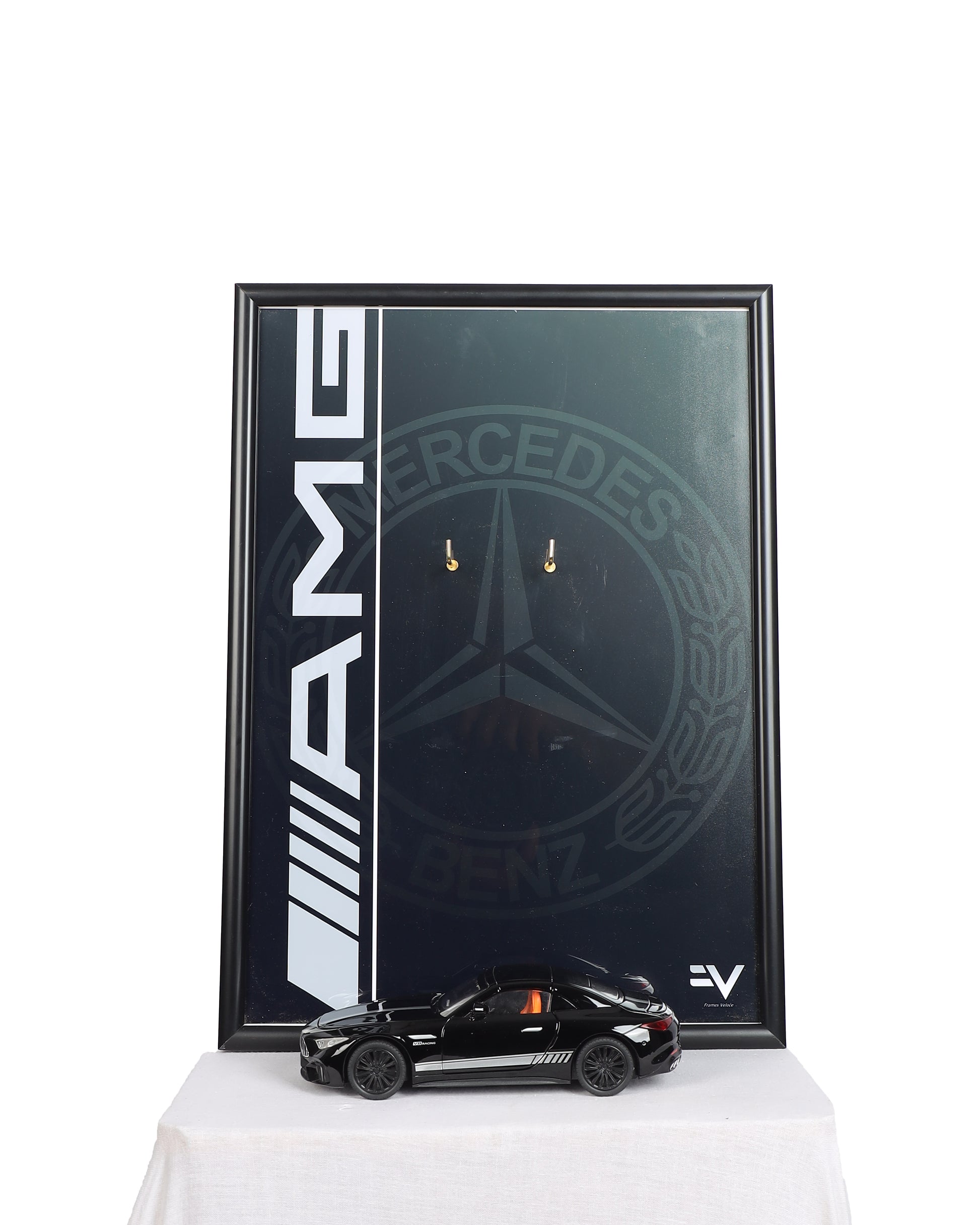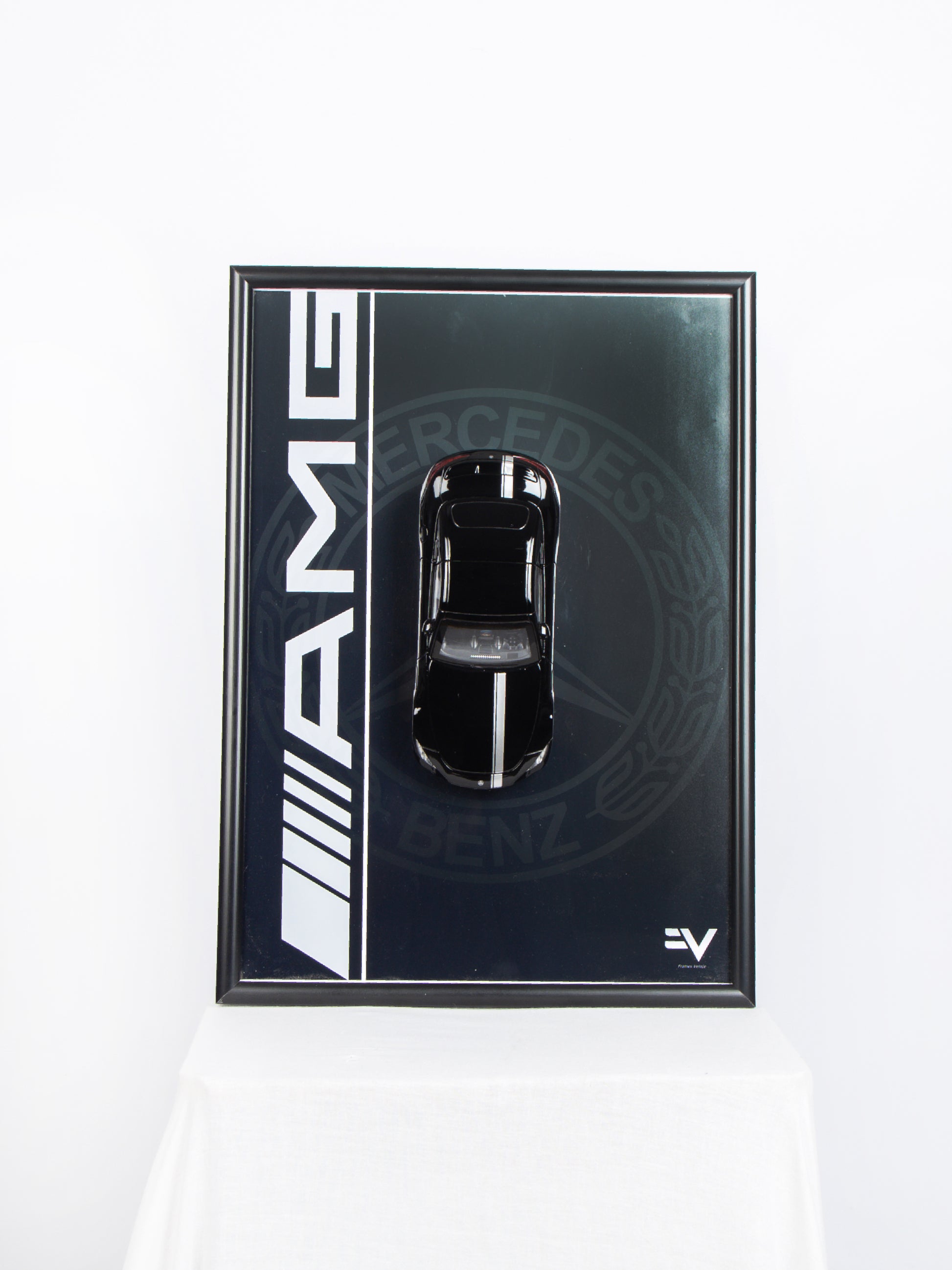 The Mercedes-AMG GT 63 E-Performance is a fusion of luxury and unrelenting power. This 1:24 scale model is displayed on a sleek monochrome poster that embodies AMG’s dominance, featuring a bold vertical AMG insignia and the iconic Mercedes-Benz crest subtly in the background. The deep black gradient reflects the car’s aggressive styling, while the minimalist yet commanding design captures its performance DNA. Housed in a premium frame with top-tier packaging, this piece is an essential statement for those who appreciate elite engineering and high-performance design.